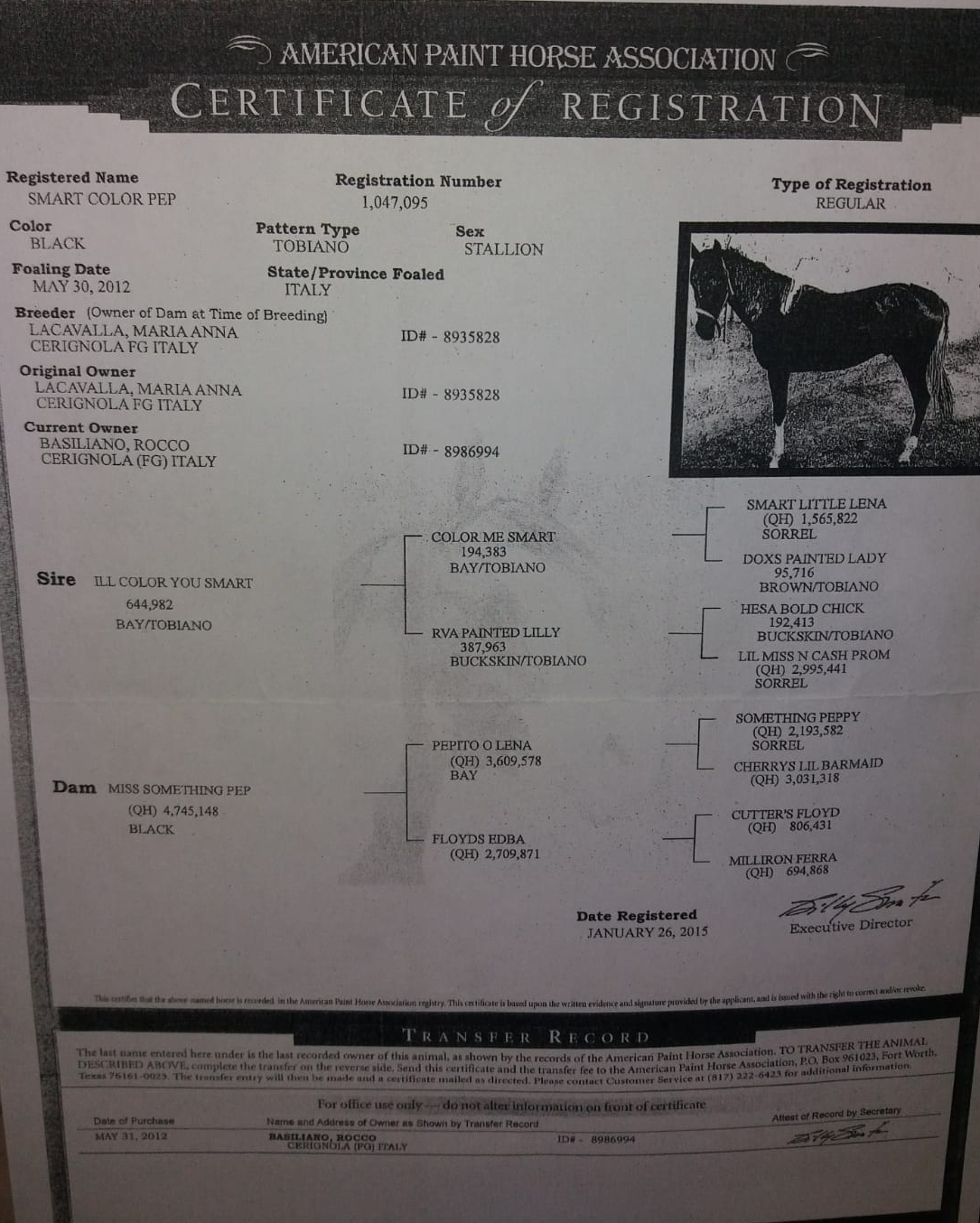 | By PEPITO O LENA b QUARTER HORSE By SOMETHING PEPPY ![]() NCHA Futurity Finalist, now in Italy.. | |