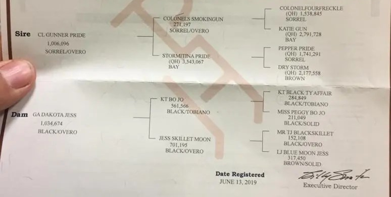 | Sire CL GUNNER PRIDE ![]() | By COLONELS SMOKING GUN ![]() Gunner ($ 9 million sire) Registered with AQHA & APHA (APHA AS `Colonels Smokinggun` NRHA LTE $177,670. 1996 NRHA Open Futurity Res Champion 1998 NRHA Reserve Champion-tied 2001 Champion USET Reining Championship APHA Hall of Fame NRHA Hall Of Fame |