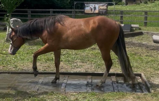 | Sire COOL SILVER PIMA ![]() | By BLACK IN SIDE R blk ov 1996 PAINT ![]() Stallone Paint Horse con particolare mantello bianco e nero overo. Eccellente riproduttore di soggetti da lavoro, tra i suoi figli anche molteplici vincitori di gare di morfologia. Ottimo trasmettitore del colore bianco e nero anche da fattrici Quarter Horse. Cavallo dolce e sensibile, trasmette ai figli il carattere serio e docile. |