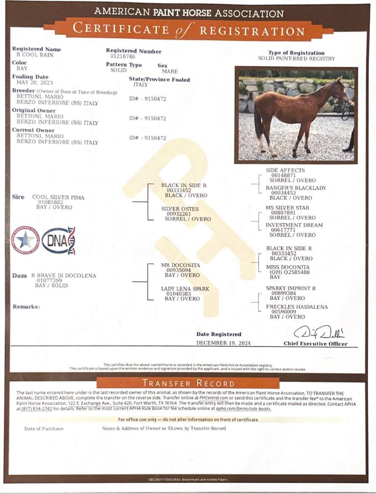 | Dam B BRAVE DI DOCOLENA ![]() | Ex LADY LENA SPARK PAINT |