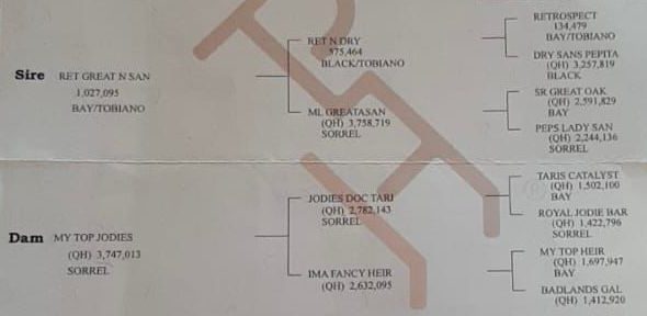 | Dam MY TOP JODIES (QH) 3,747,013 SORREL | Ex IMA FANCY HEIR (OH) 2,632,09S |